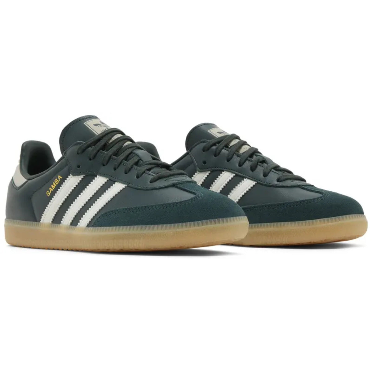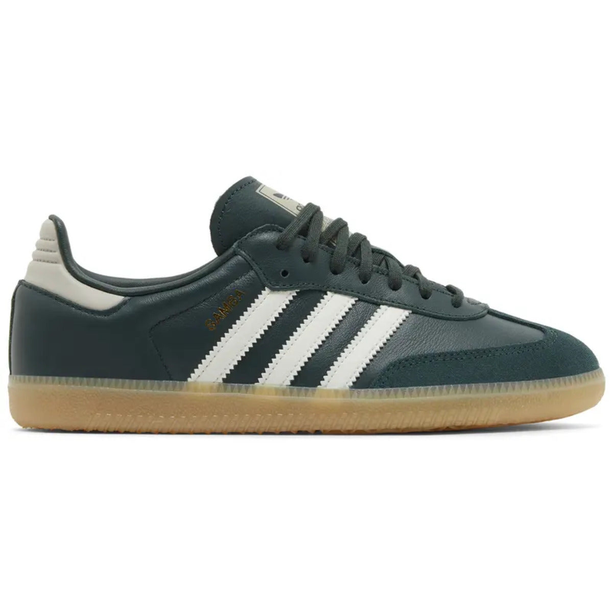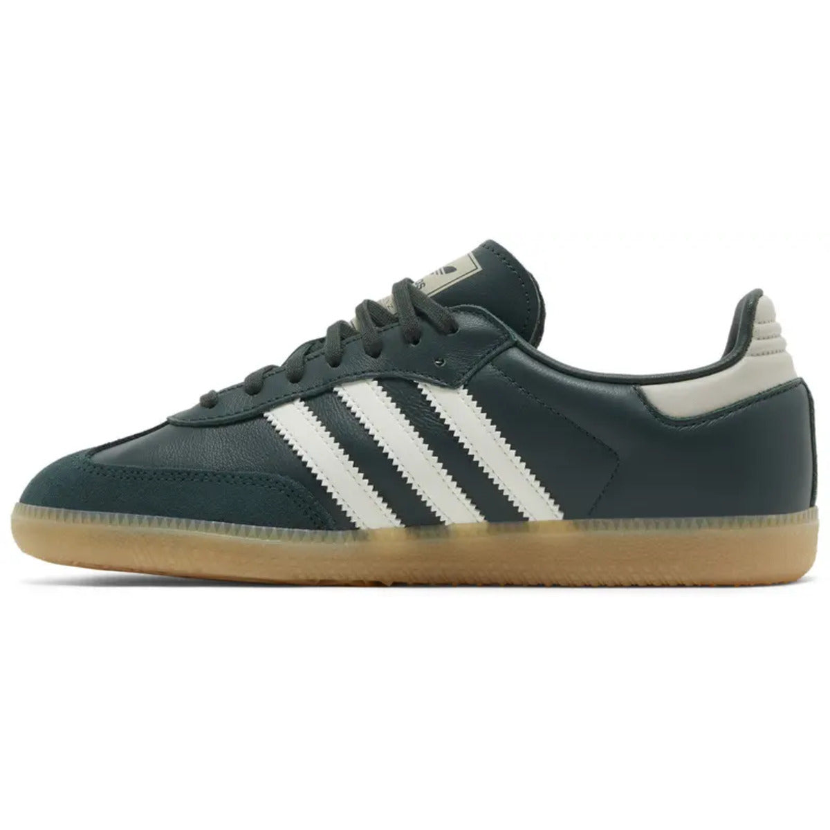 The Adidas Samba OG Mineral Green Off White Putty Grey (GS) features a striking mineral green upper with off-white and putty grey accents, showcasing the classic Samba silhouette. Built with premium leather and rubber construction, it delivers durable performance and all-day comfort.