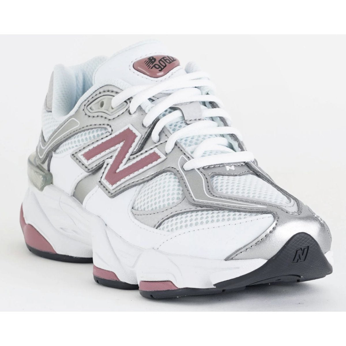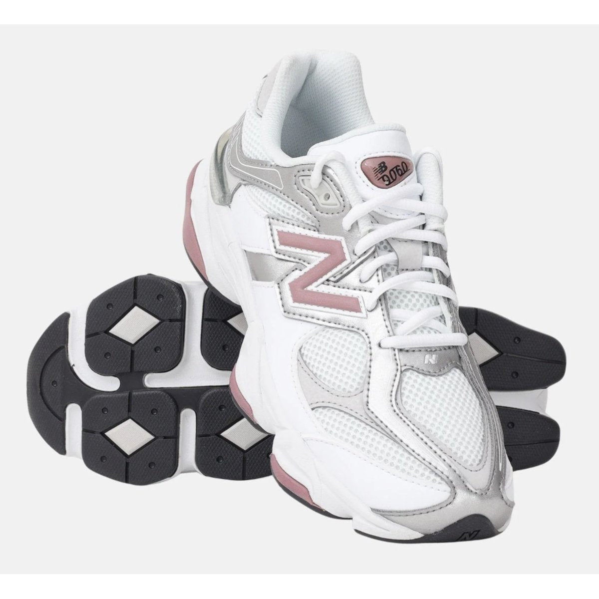 The New Balance 9060 White Rosewood Silver (GS) features a sophisticated blend of crisp white and soft rosewood accents with metallic silver overlays. Built with exaggerated pods and a futuristic midsole, it delivers enhanced cushioning and a bold, chunky aesthetic for younger trendsetters.